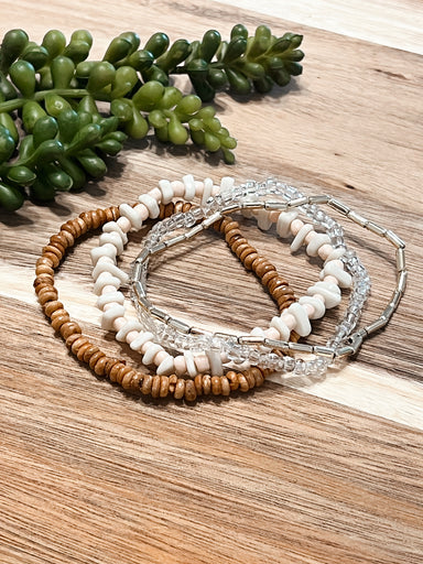Unleash your boho chic style with our Natural Nautical Stretch Bracelet Set. This unique set features a beautiful mix of natural and metallic eleme...