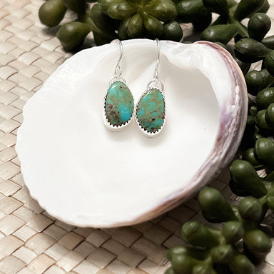 Smaller sized turquoise dangles- the perfect everyday wear! Lovely shape and lightweight. Handcrafted by a talented Native American artist.